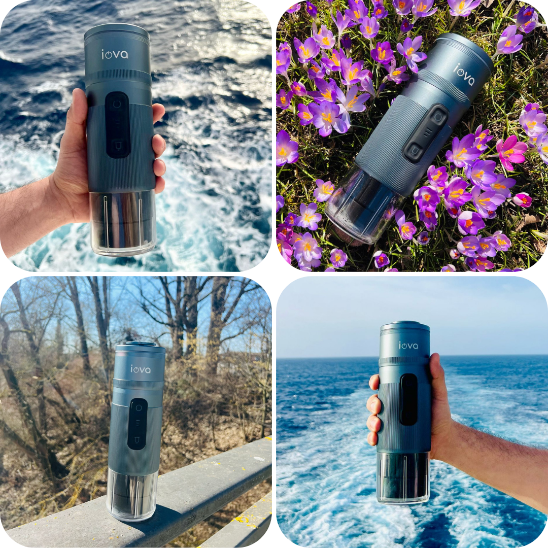 The IOVA PRO Portable Coffee Maker – your perfect travel companion for bold, barista-quality coffee on the go.
